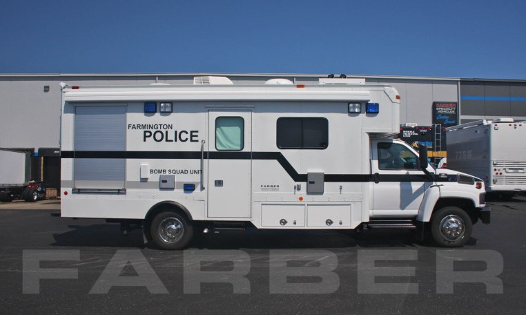 Vehicle number 15392 is a Bomb Squad/EOD vehicle designed by Farber Specialty Vehicles and built for Farmington on a Chevrolet chassis. Farber is here to help you with a custom solution to all your specialty vehicle needs. Call us today at (800) 331-3188.