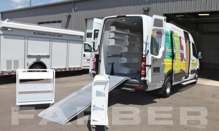 Vehicle number 15980 is a Sprinter Bookmobile designed by Farber Specialty Vehicles and built for Mineola Memorial Library on a Freightliner chassis. Farber is here to help you with a custom solution to all your specialty vehicle needs. Call us today at (800) 331-3188.