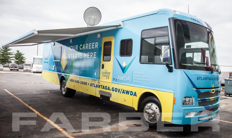 Vehicle number 16328 is a Workforce Development/Classroom vehicle designed by Farber Specialty Vehicles and built for Atlanta Workforce on a Freightliner chassis. Farber is here to help you with a custom solution to all your specialty vehicle needs. Call us today at (800) 331-3188.