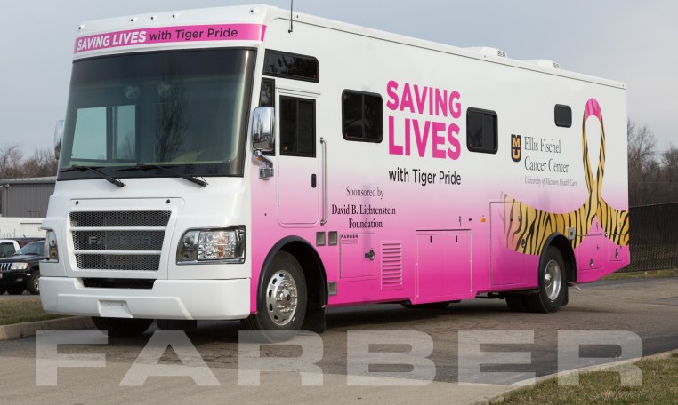 Vehicle number 16348 is a Mobile Mammography vehicle designed by Farber Specialty Vehicles and built for University of Missouri Ellis Fischel Cancer Center on a Freightliner chassis. Farber is here to help you with a custom solution to all your specialty vehicle needs. Call us today at (800) 331-3188.