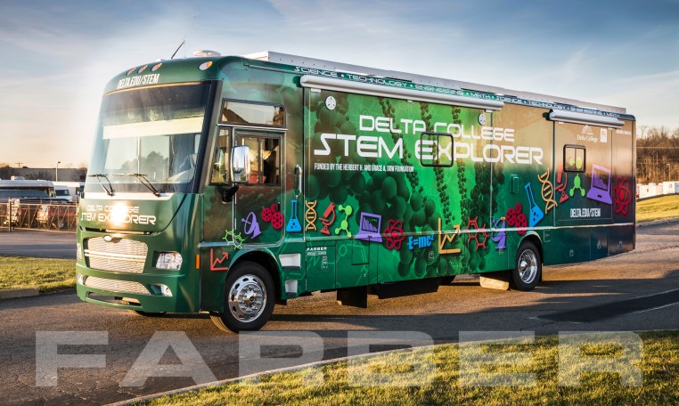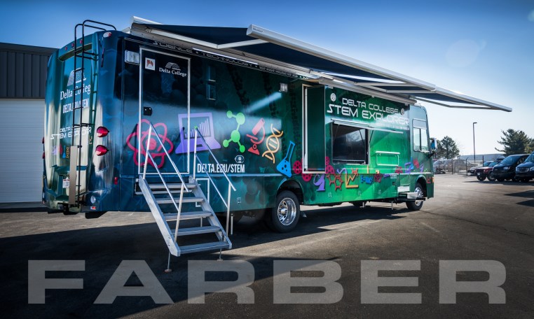 Vehicle number 16386 is a Mobile STEM Labs vehicle designed by Farber Specialty Vehicles and built for Delta College on a Freightliner chassis. Farber is here to help you with a custom solution to all your specialty vehicle needs. Call us today at (800) 331-3188.