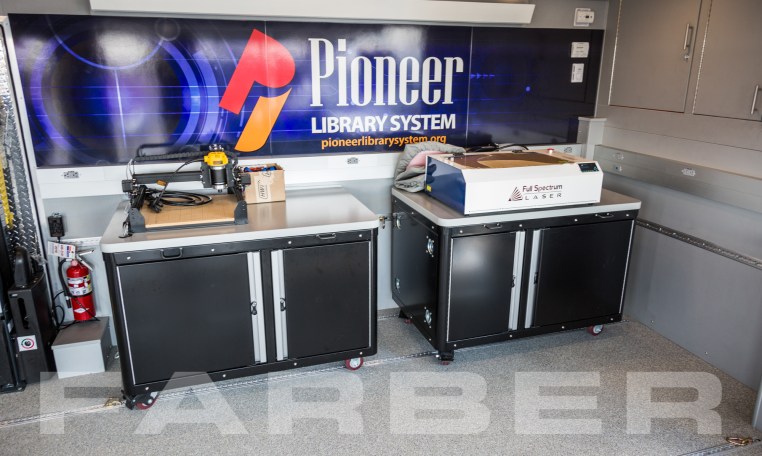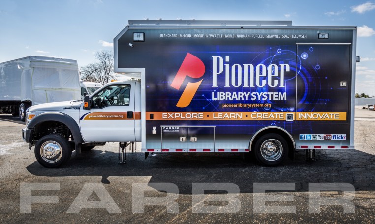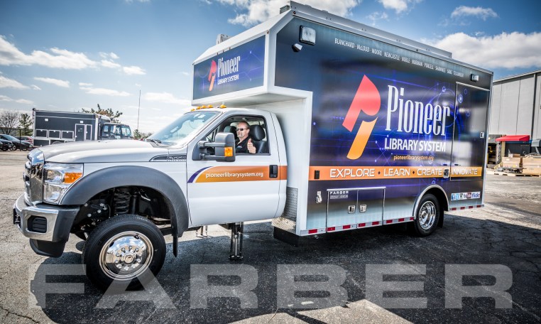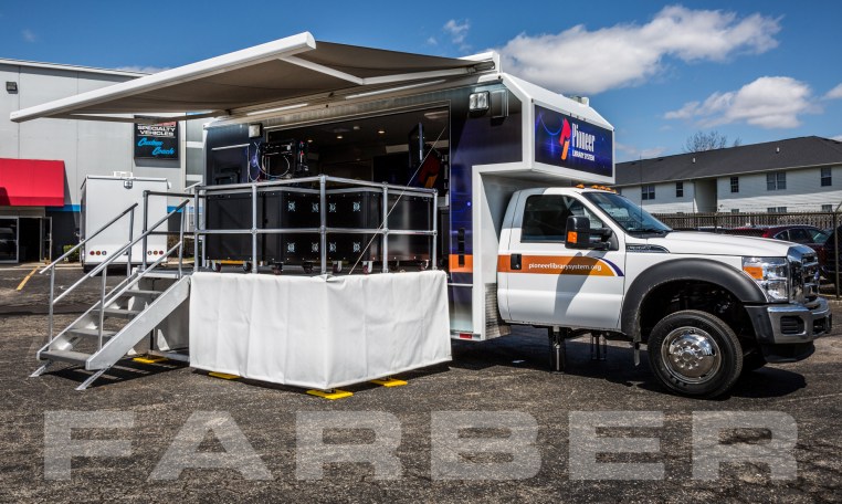 Vehicle number 16404 is a Mobile Maker Space vehicle designed by Farber Specialty Vehicles and built for Pioneer Library System on a Ford chassis. Farber is here to help you with a custom solution to all your specialty vehicle needs. Call us today at (800) 331-3188.