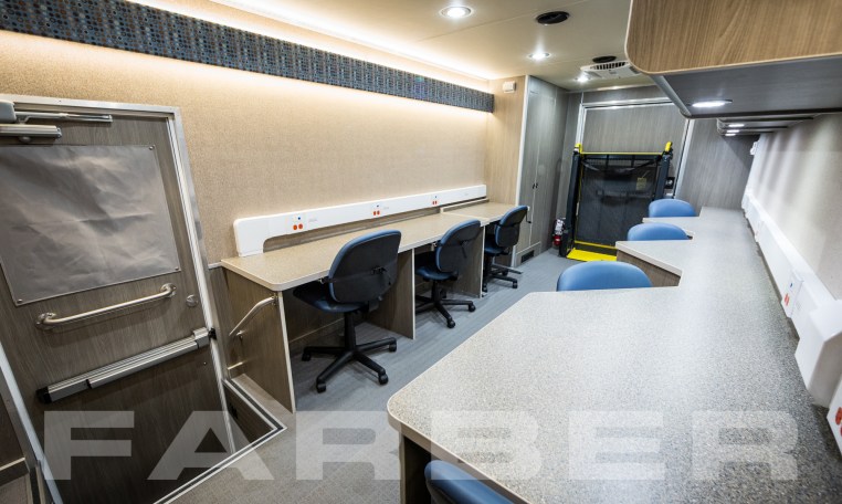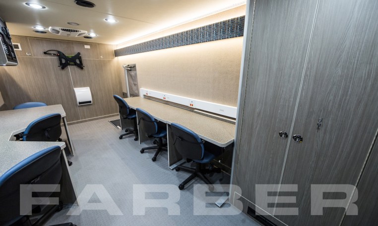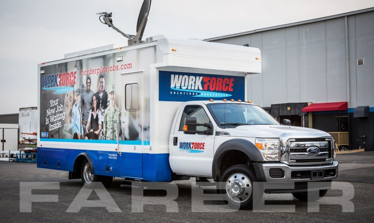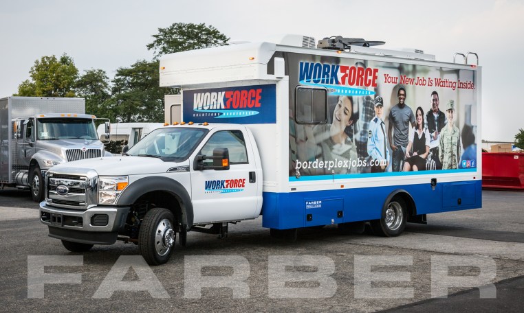 Vehicle number 16420 is a Workforce Development/Classroom vehicle designed by Farber Specialty Vehicles and built for Workforce Borderplex TX on a Ford chassis. Farber is here to help you with a custom solution to all your specialty vehicle needs. Call us today at (800) 331-3188.