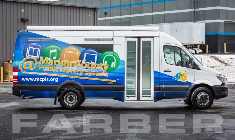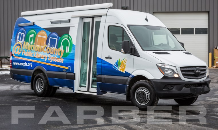 Vehicle number 16621 is a Sprinter Bookmobile designed by Farber Specialty Vehicles and built for Marion County on a Mercedes chassis. Farber is here to help you with a custom solution to all your specialty vehicle needs. Call us today at (800) 331-3188.