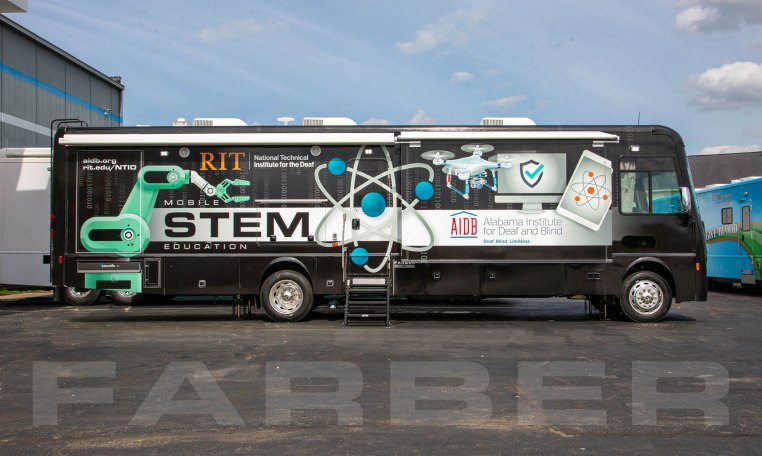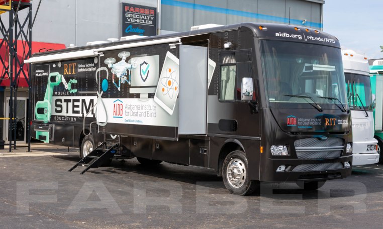 Vehicle number 16754 is a Mobile STEM Labs vehicle designed by Farber Specialty Vehicles and built for Alabama Institute Deaf Blind on a Freightliner chassis. Farber is here to help you with a custom solution to all your specialty vehicle needs. Call us today at (800) 331-3188.