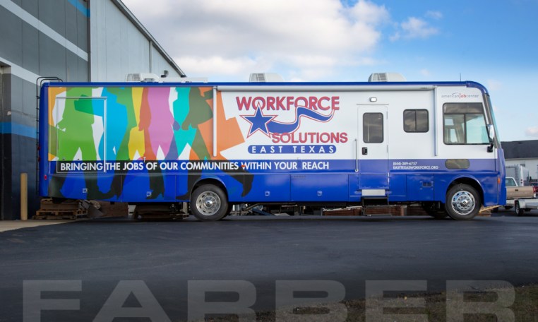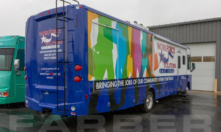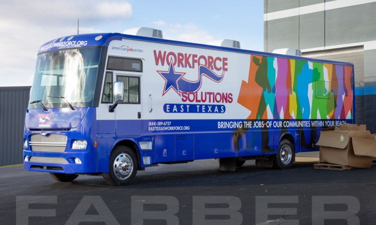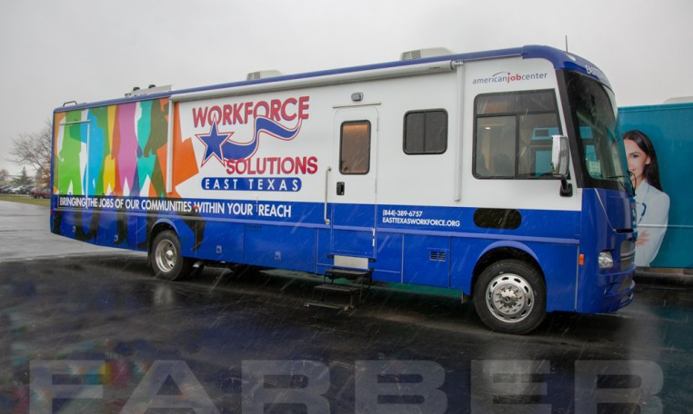 Vehicle number 16770 is a Workforce Development/Classroom vehicle designed by Farber Specialty Vehicles and built for Workforce Solutions East Texas on a Freightliner chassis. Farber is here to help you with a custom solution to all your specialty vehicle needs. Call us today at (800) 331-3188.