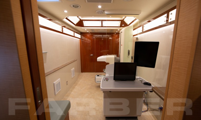 Vehicle number 17049 is a Mobile Mammography vehicle designed by Farber Specialty Vehicles and built for University of Utah Huntsman on a Freightliner chassis. Farber is here to help you with a custom solution to all your specialty vehicle needs. Call us today at (800) 331-3188.