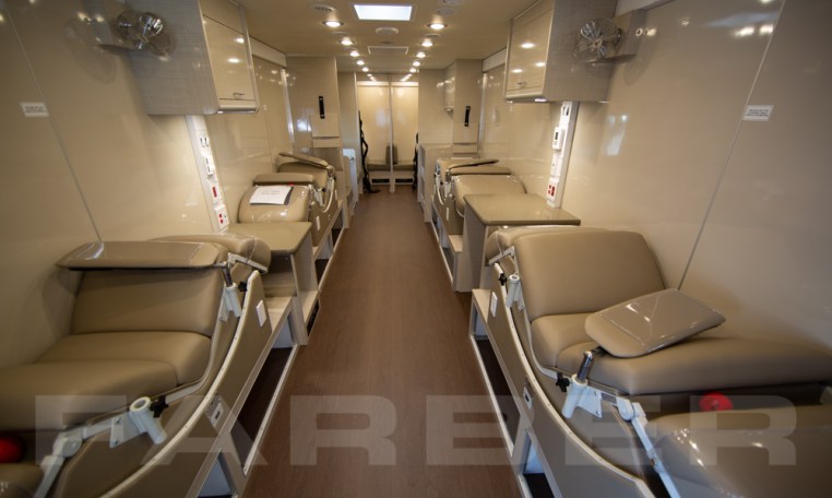 Vehicle number 17211 is a Bloodmobile designed by Farber Specialty Vehicles and built for Carter Bloodcare on a Freightliner chassis. Farber is here to help you with a custom solution to all your specialty vehicle needs. Call us today at (800) 331-3188.