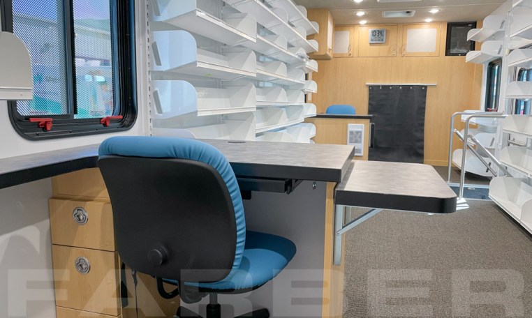 Vehicle number 17225 is a M2 Bookmobile vehicle designed by Farber Specialty Vehicles and built for Findlay Hancock County Library on a Freightliner chassis. Farber is here to help you with a custom solution to all your specialty vehicle needs. Call us today at (800) 331-3188.