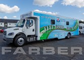 Vehicle number 17299 is a Bloodmobile designed by Farber Specialty Vehicles and built for Oklahoma Blood Institute on a Freightliner chassis. Farber is here to help you with a custom solution to all your specialty vehicle needs. Call us today at (800) 331-3188.
