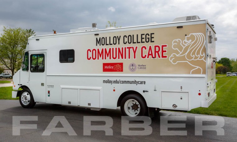 Vehicle number 17387 is a COVID-19 Mobile Testing vehicle designed by Farber Specialty Vehicles and built for Molloy College on a Freightliner chassis. Farber is here to help you with a custom solution to all your specialty vehicle needs. Call us today at (800) 331-3188.