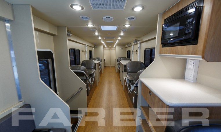 Vehicle number 17474 is a Bloodmobile designed by Farber Specialty Vehicles and built for Shepeard Community Blood Center on a Freightliner chassis. Farber is here to help you with a custom solution to all your specialty vehicle needs. Call us today at (800) 331-3188