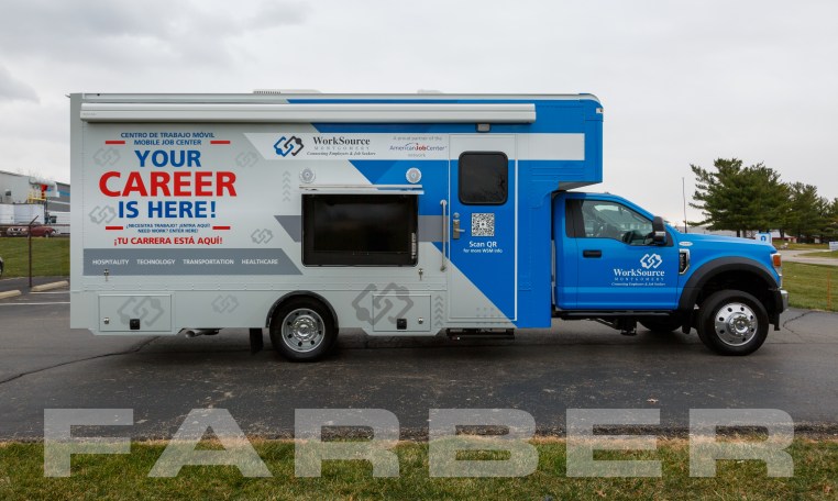 Vehicle number 17481 is a Workforce Development/Classroom vehicle designed by Farber Specialty Vehicles and built for Montgomery on a Ford F550 chassis. Farber is here to help you with a custom solution to all your specialty vehicle needs. Call us today at (800) 331-3188.