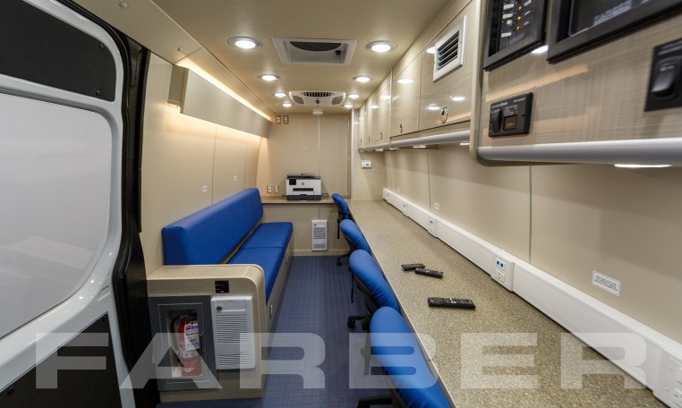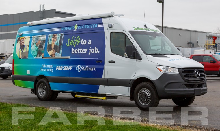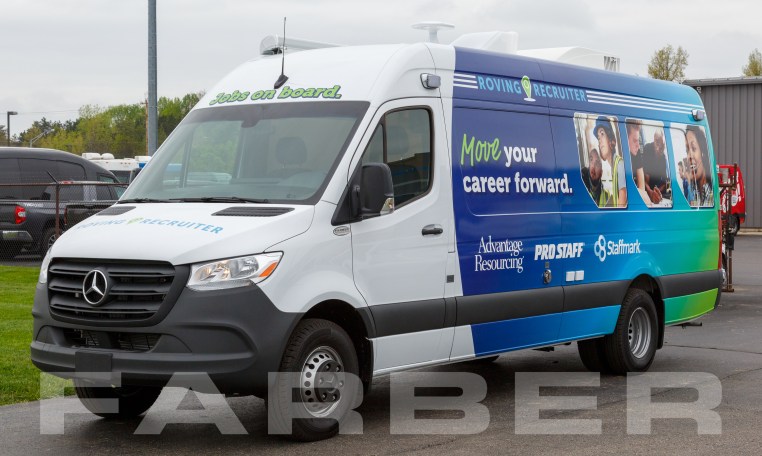 Vehicle number 17506 is a Workforce Development/Classroom vehicle designed by Farber Specialty Vehicles and built for Staffmark on a Mercedes Sprinter chassis. Farber is here to help you with a custom solution to all your specialty vehicle needs. Call us today at (800) 331-3188.