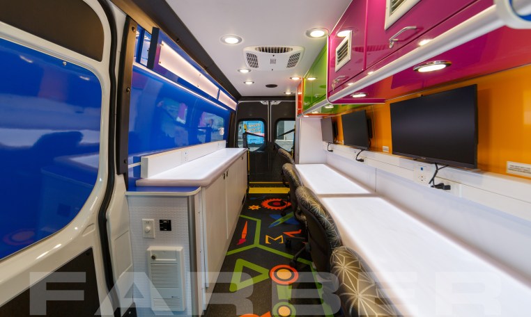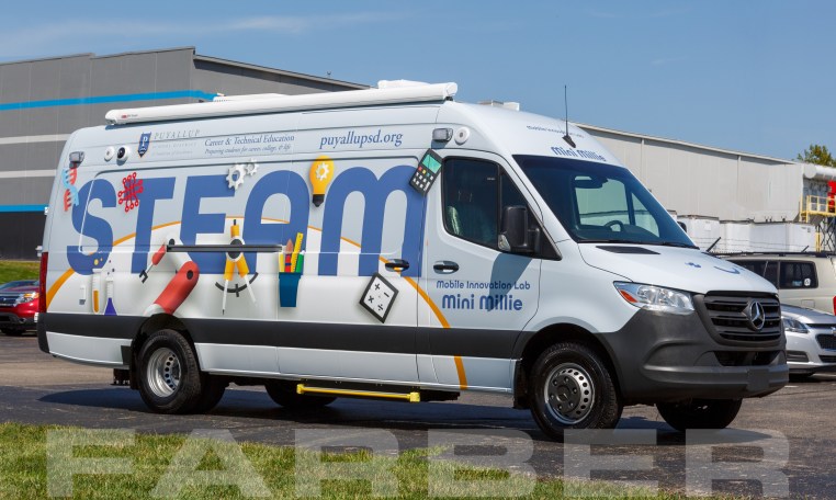 Vehicle number 17516 is a Mobile STEM Labs vehicle designed by Farber Specialty Vehicles and built for Payallup on a Mercedes Sprinter chassis. Farber is here to help you with a custom solution to all your specialty vehicle needs. Call us today at (800) 331-3188.