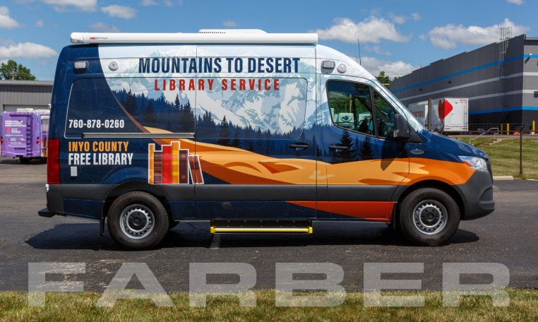 Vehicle number 17539 is a Sprinter Book Hauler designed by Farber Specialty Vehicles and built for County of Inyo on a Mercedes chassis. Farber is here to help you with a custom solution to all your specialty vehicle needs. Call us today at (800) 331-3188.