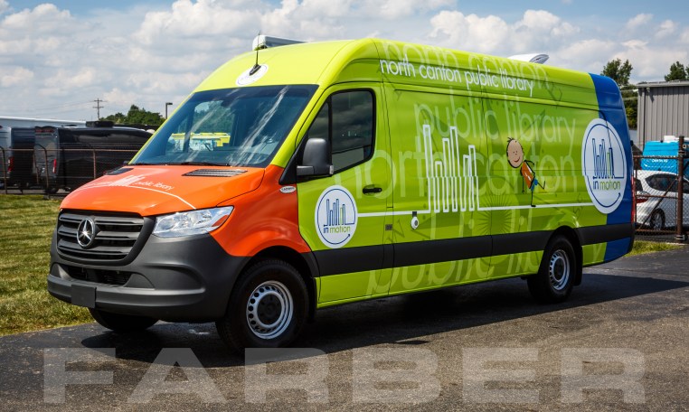 Vehicle number 17549 is a Sprinter Book Hauler designed by Farber Specialty Vehicles and built for North Canton Public Library on a Mercedes chassis. Farber is here to help you with a custom solution to all your specialty vehicle needs. Call us today at (800) 331-3188.