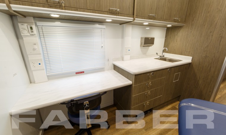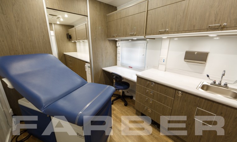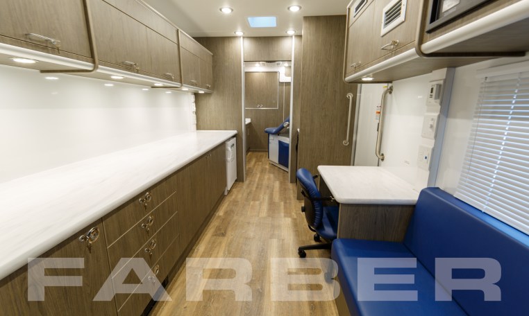 17583 is a Mobile Health Outreach trailer designed by Farber Specialty Vehicles and built for Tampa Family Health on a gooseneck trailer chassis. Farber is here to help you with a custom solution to all your specialty vehicle needs. Call us today at (800) 331-3188.