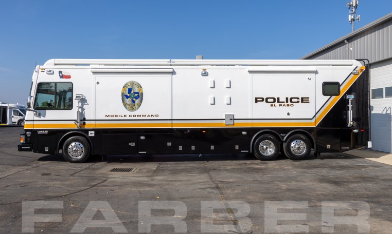 Vehicle number 17606 is a Mobile Command vehicle designed by Farber Specialty Vehicles and built for the El Paso Police on a Freightliner chassis. Farber is here to help you with a custom solution to all your specialty vehicle needs. Call us today at (800) 331-3188.