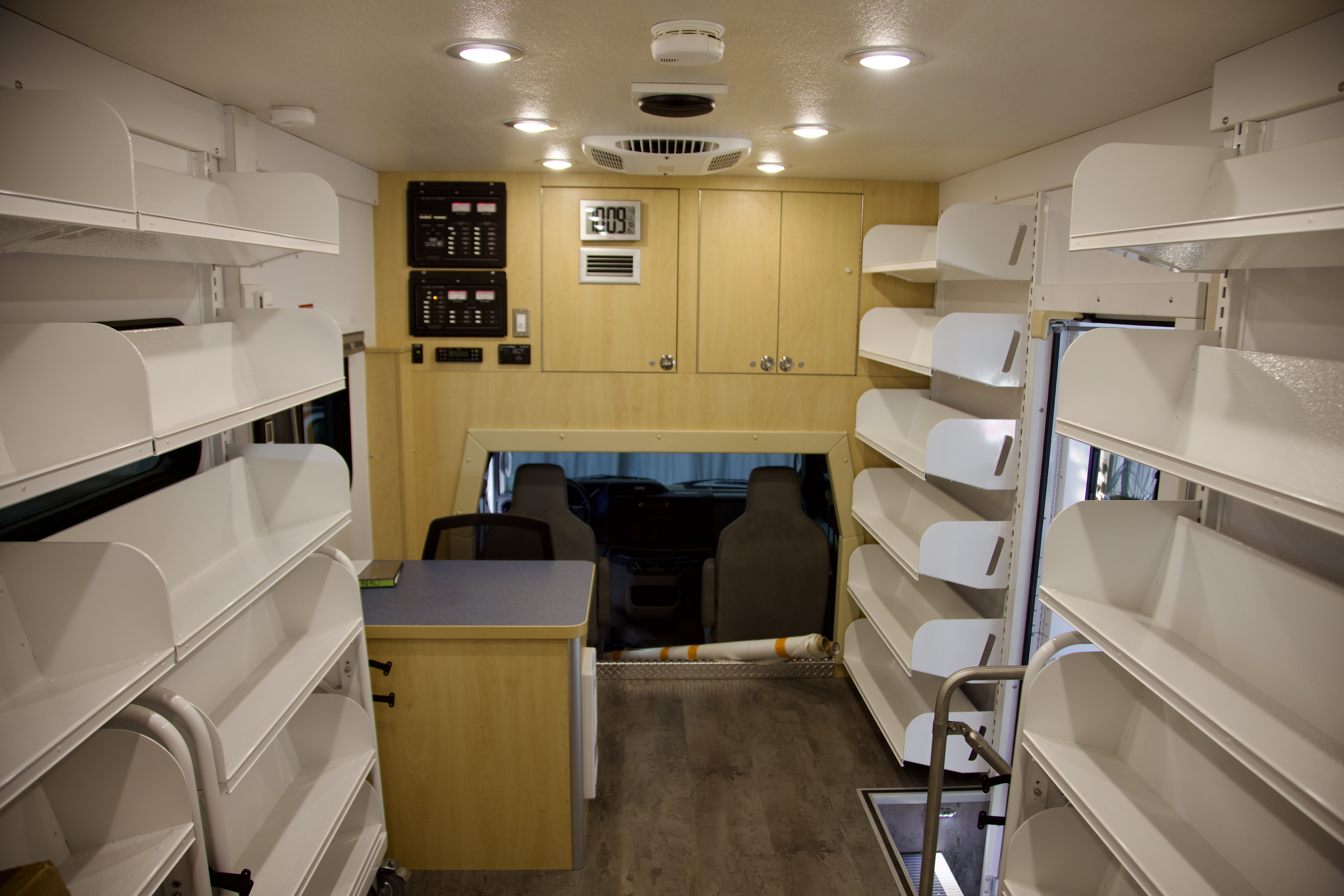 Vehicle number 17682 is a custom-built Bookmobile expertly designed by Farber Specialty Vehicles for the Sussex County Library. Built on a Ford E450 chassis, this vehicle offers a blend of functionality and convenience to meet the unique demands of a mobile library.