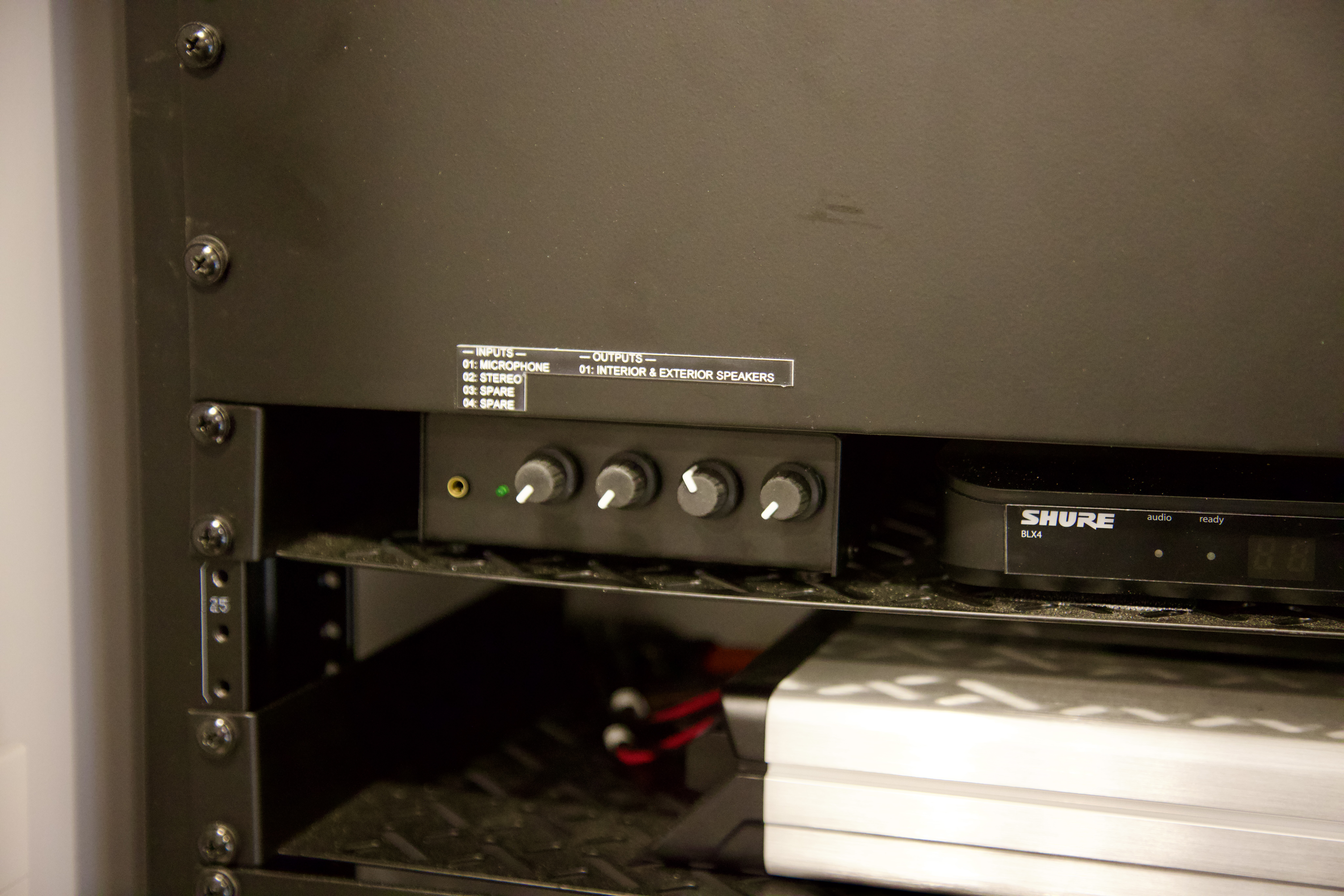 Technology: Two televisions and a public address system for multimedia presentations and announcements.