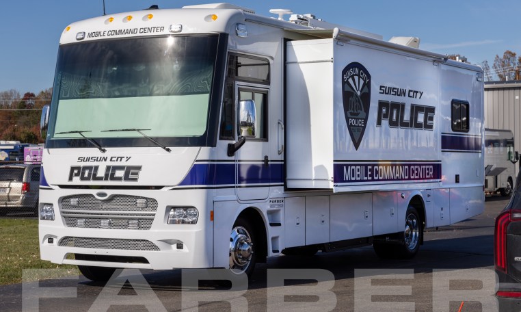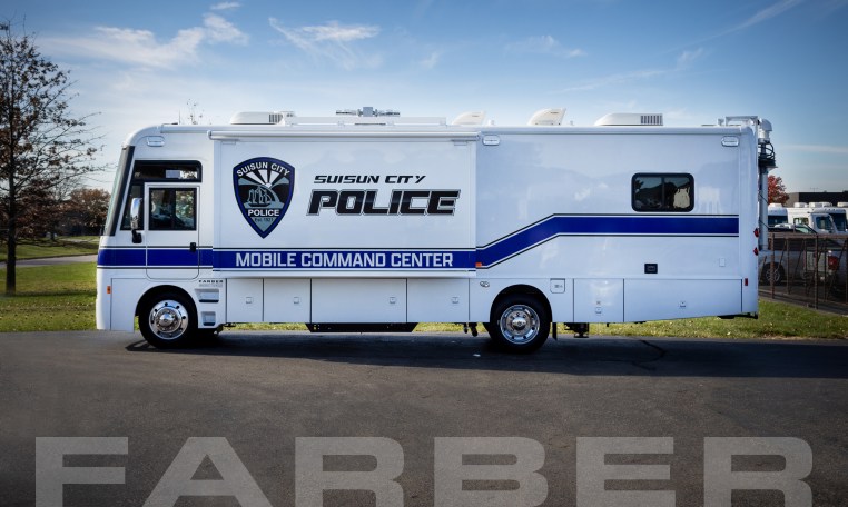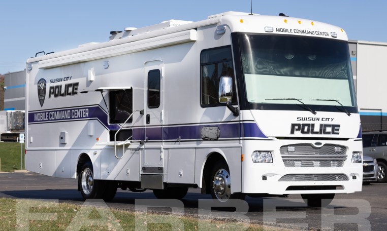 Vehicle number 17689 is a Mobile Command vehicle designed by Farber Specialty Vehicles and built for Suisun City Police Department on a Freightliner Coach chassis. Farber is here to help you with a custom solution to all your specialty vehicle needs. Call us today at (800) 331-3188.