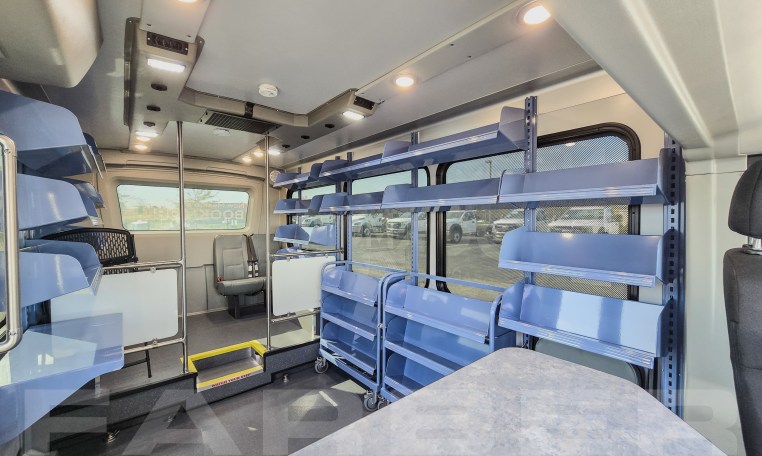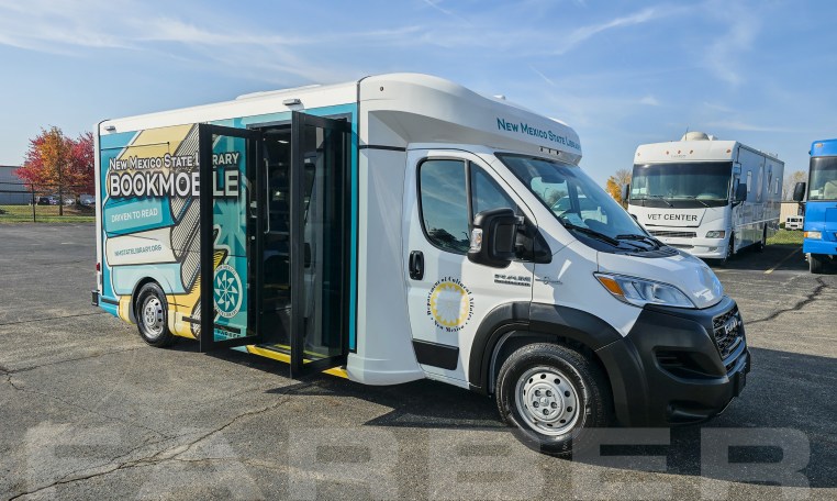 Vehicle number 17704 is an ELF (Extremely Low Floor) Bookmobile designed by Farber Specialty Vehicles for the New Mexico State Library on a Dodge RAM ProMaster chassis. Farber is here to help you with a custom solution to all your specialty vehicle needs. Call us today at (800) 331-3188.