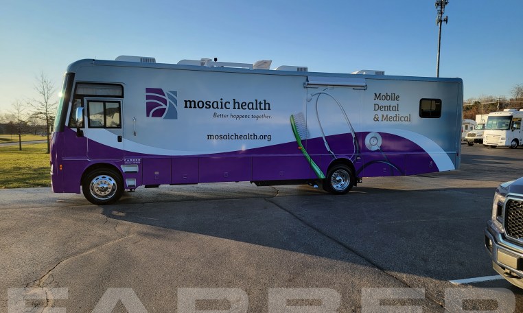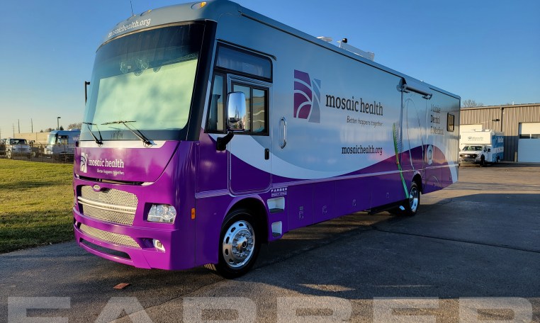 Vehicle number 17707 is a Mobile Health Outreach vehicle designed by Farber Specialty Vehicles and built for Mosaic Health on a Freightliner coach chassis. Farber is here to help you with a custom solution to all your specialty vehicle needs. Call us today at (800) 331-3188.