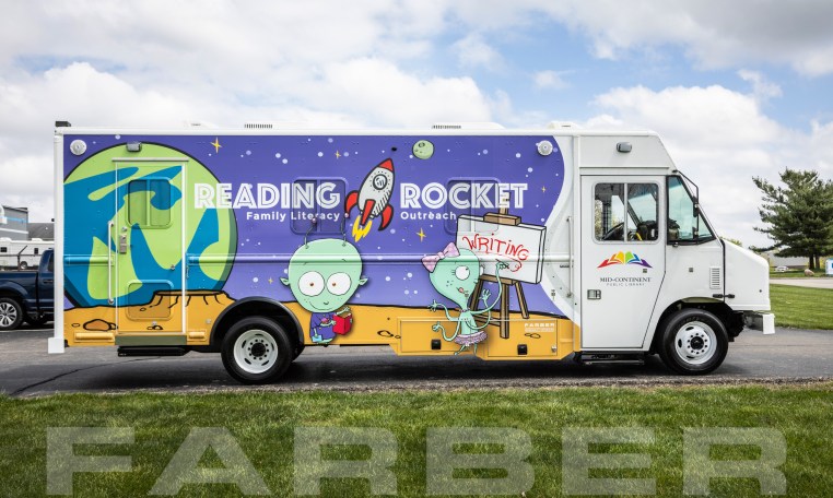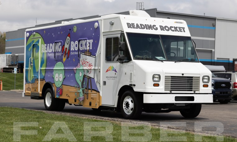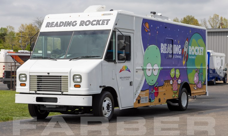 Vehicle number 17736 is a bookmobile designed by Farber Specialty Vehicles and built for Mid-Continent Public Library on a Freightliner MT55 chassis. Farber is here to help you with a custom solution to all your specialty vehicle needs. Call us today at (800) 331-3188.
