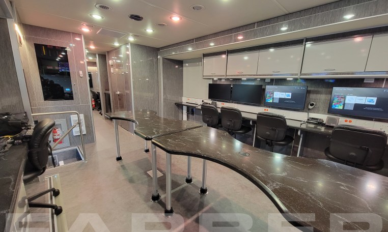 Vehicle number 17738 is a Mobile Command vehicle designed by Farber Specialty Vehicles and built for Appleton on a Freightliner Coach chassis. Farber is here to help you with a custom solution to all your specialty vehicle needs. Call us today at (800) 331-3188.