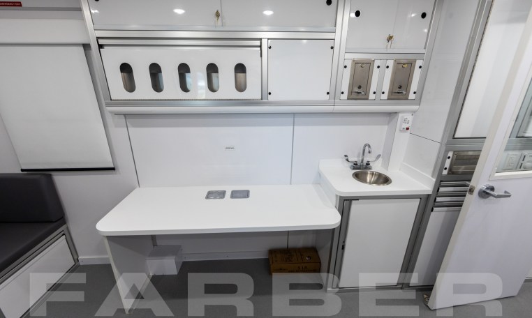 Vehicle number 177440 is a Mobile Health Outreach vehicle designed by Farber Specialty Vehicles and built for Overland Custom Coach on a Freightliner coach chassis. Farber is here to help you with a custom solution to all your specialty vehicle needs. Call us today at (800) 331-3188.