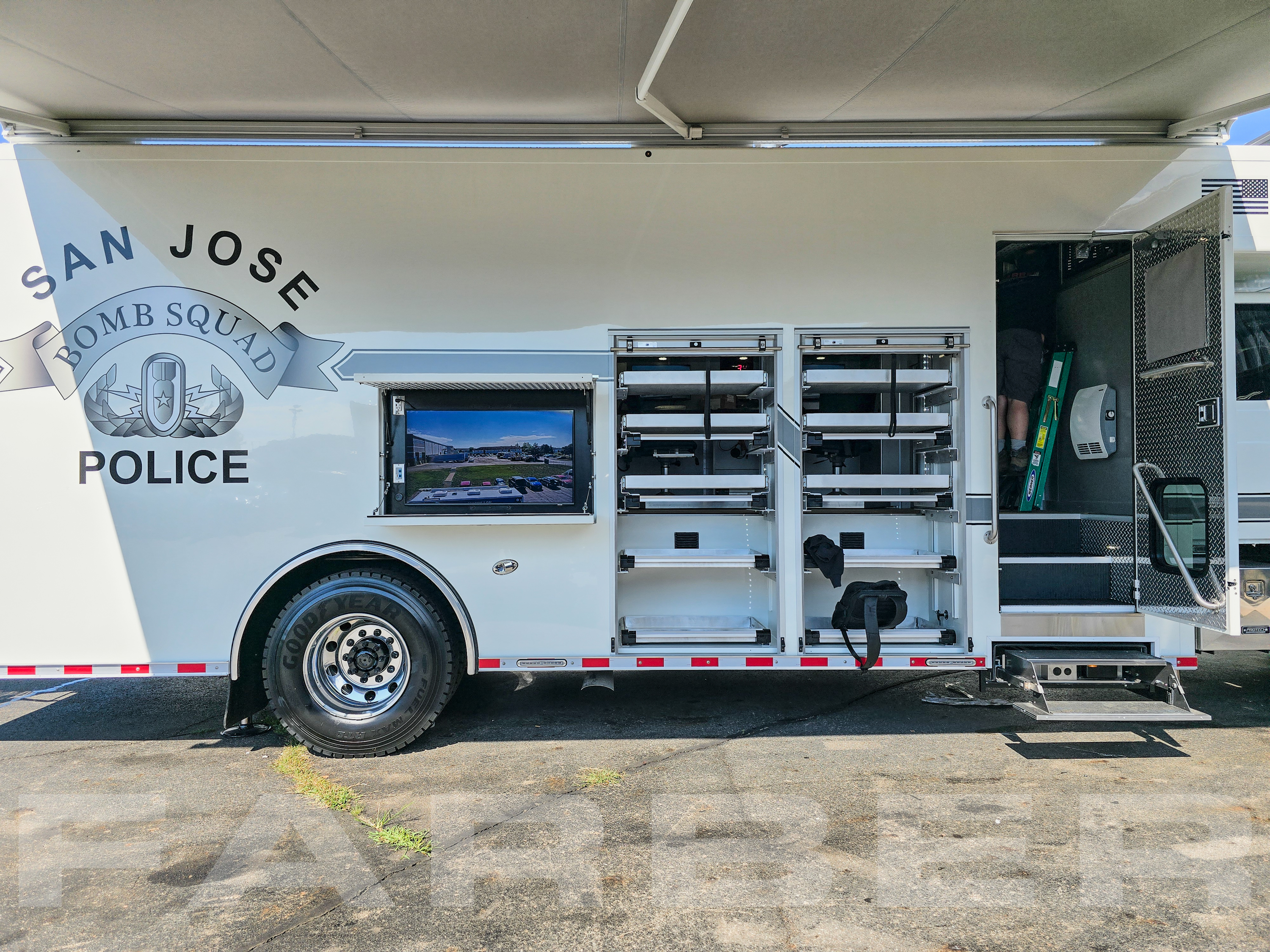 Vehicle number 17763 is a Bomb Squad/EOD vehicle designed by Farber Specialty Vehicles and built for San Jose Police Department on an International MV chassis. Farber is here to help you with a custom solution to all your specialty vehicle needs. Call us today at (800) 331-3188.