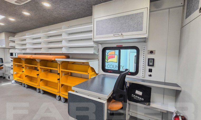 Vehicle number 17774 is an M2 Bookmobile vehicle designed by Farber Specialty Vehicles and built for St. Louis Library on a Freightliner chassis. Farber is here to help you with a custom solution to all your specialty vehicle needs. Call us today at (800) 331-3188.