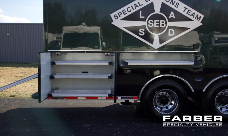 Vehicle number 17783 is a 32 Foot Swat Command vehicle designed by Farber Specialty Vehicles and built for Los Angeles County Sheriff’s Department on an International chassis. Farber is here to help you with a custom solution to all your specialty vehicle needs. Call us today at (800) 331-3188.