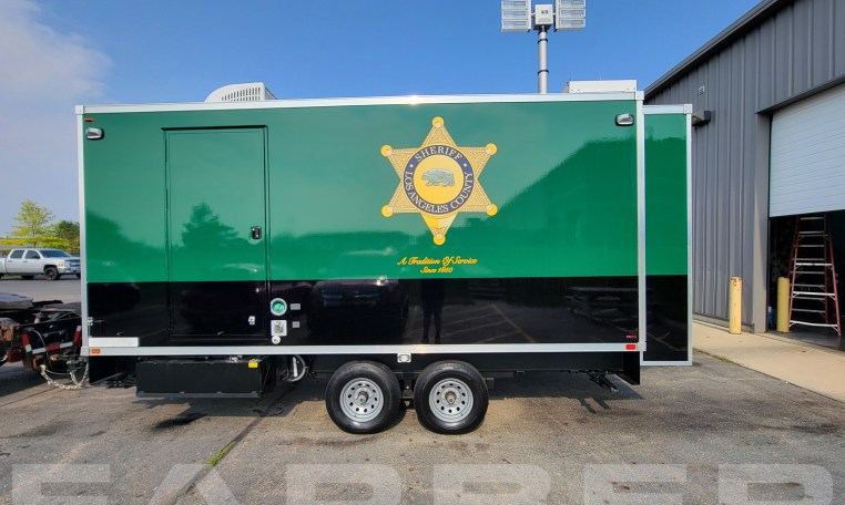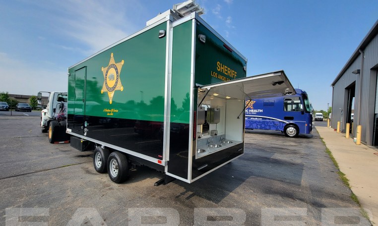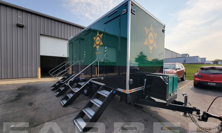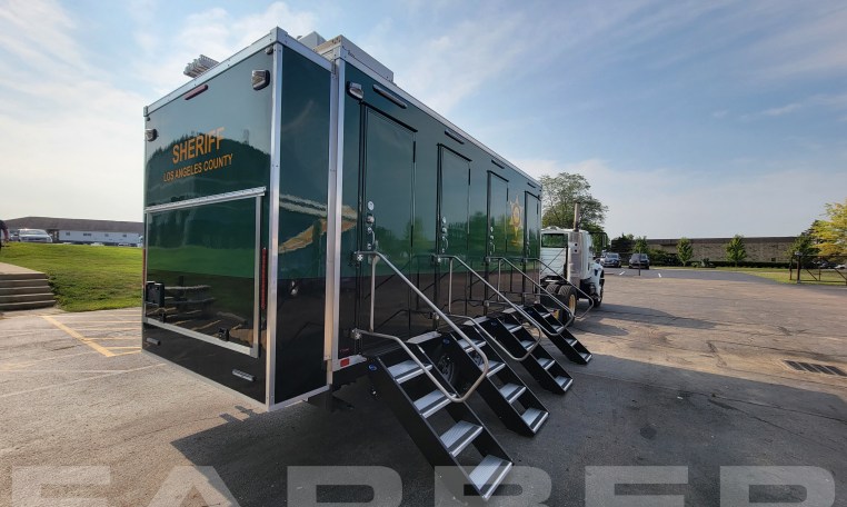 Trailer number 17837 is a Bathroom trailer designed by Farber Specialty Vehicles and built for Los Angeles County Sheriff on a trailer. Farber is here to help you with a custom solution to all your specialty vehicle needs. Call us today at (800) 331-3188.
