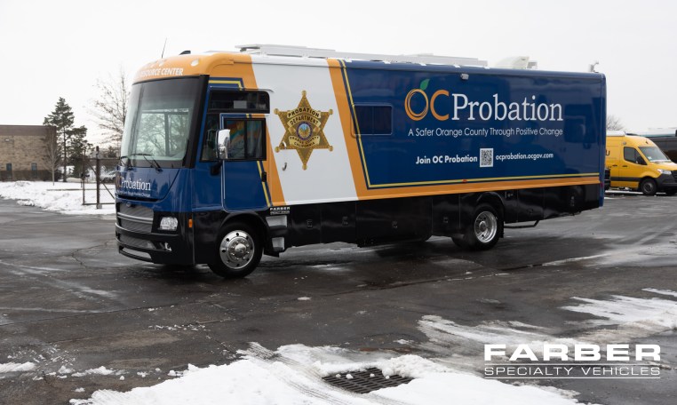 Vehicle number 17874 is a Federal Agency vehicle designed by Farber Specialty Vehicles and built for Orange County Probation Department on a Freightliner chassis. Farber is here to help you with a custom solution to all your specialty vehicle needs. Call us today at (800) 331-3188.