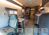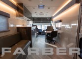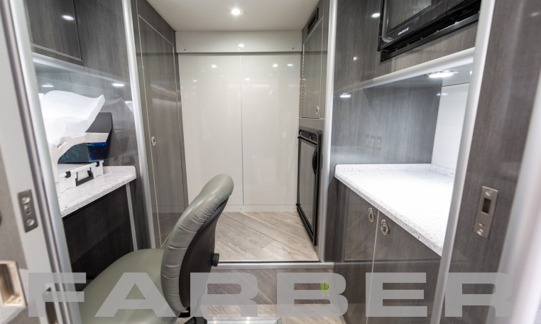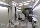 Mobile Dental Coach 41′ 4″, 8.3L, Cummins 400HP, diesel powered, rear engine, 33,000 GVWR, Allison 6-speed automatic, 20kW commercial generator, 150 gal fuel tank, full air-suspension, air disc brakes, independent front suspension, 101 exterior width,aluminum frame body construction, fiberglass exterior, flat interior floor, no wheel wells, electric steps, aluminum outer wheels. Built-in dash monitor for rearview camera system. Three roof AC, electric heat, leveling/stabilizing system, magnetic/hydraulic 12V circuit breakers, disconnect switches for main and auxiliary battery system, 90 amp converter, 36 shoreline. Custom cabinets cut using CNC router. Space is designed for efficiency and ergonomic function in an optimized workflow. Floor plan includes two operatories, intake/reception area, waiting area and sterilization center. Custom options for restroom, ADA accessibility, additional entrances and awnings. Dental chairs, X-rays, sterilization and other dental equipment available.