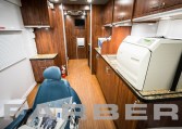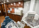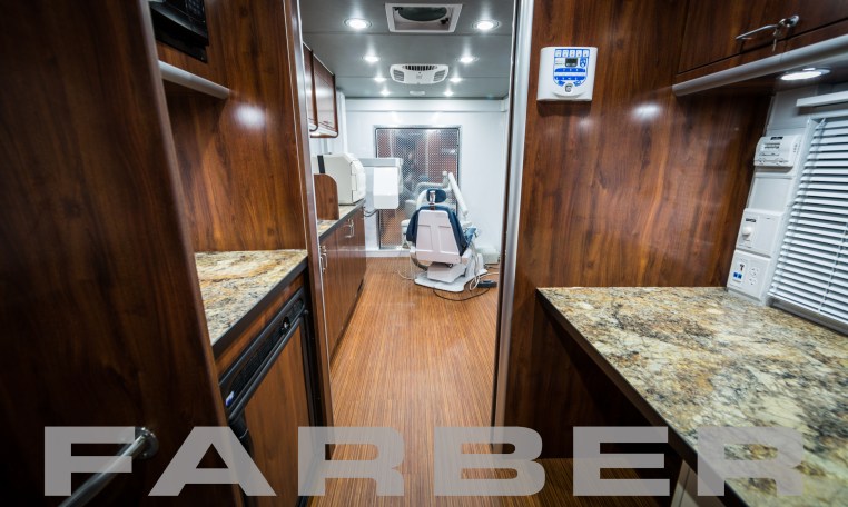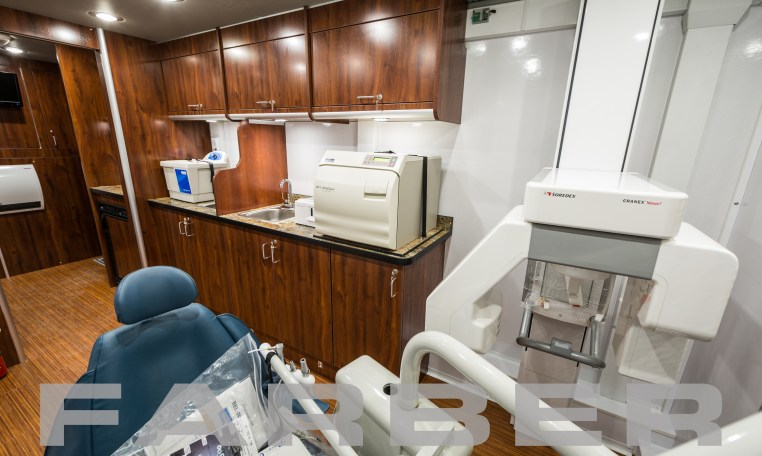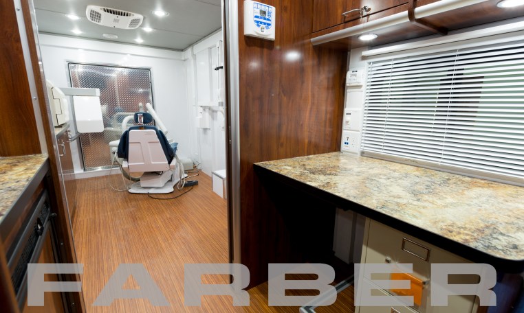 Mobile Dental Vehicle 29′, 260HP diesel engine, 26,000 GVWR, Allison 2500 RDS auto 5 speed, 60 gallon fuel tank. 12kW diesel powered generator, two air conditioners. Magnetic/hydraulic 12V circuit breakers, electronic master disconnect switches for main and auxiliary battery system, 36 shoreline. Commercial/medical grade vinyl flooring. Electric heat, automatic computerized hydraulic leveling/stabilizing system, magnetic/hydraulic 12V circuit breakers, electronic disconnect switches for main and auxiliary battery system, 90 amp converter, 36 shoreline. Custom cabinets cut using CNC router. Space is designed for efficiency and ergonomic function in an optimized workflow. Floor plan includes one or two operatories, intake/reception area, waiting area and sterilization center. Custom options for restroom, ADA accessibility, additional entrances and awnings. Accessories available for dental chairs, X-rays, sterilization and other dental equipment. Alternative length options available.
