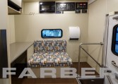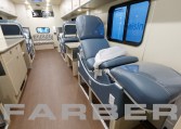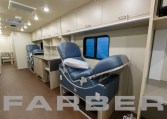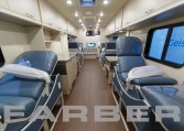 Bloodmobile Vehicle 39′, 325HP diesel engine, 33,000 GVWR, Allison 3000 RDS automatic 6 speed, air brake package, 60 gallon fuel tank. 12kW diesel powered generator, three air conditioners, group 31 deep-cycle batteries, magnetic/hydraulic 12V circuit breakers, electronic master disconnect switches for main and auxiliary battery system, 36 shoreline. Commercial / medical grade vinyl flooring. Electric heat, automatic computerized hydraulic leveling/stabilizing system, magnetic/hydraulic 12V circuitbreakers, electronic master disconnect switches for main and auxiliary battery system, 90 amp. converter, 36 shoreline. Custom cabinets cut using CNC router. Space is designed for efficiency and ergonomic function in an optimized workflow. Floorplan includes four blood draw tables, screening room(s), waiting area and lab area. Custom options for restroom, additional entrances and awnings. See price sheet for details. Alternative length options available.