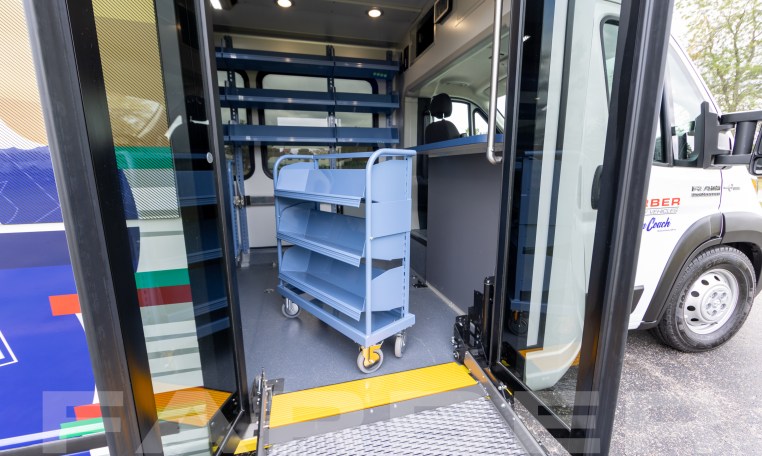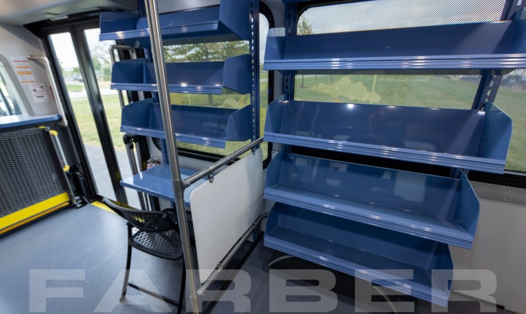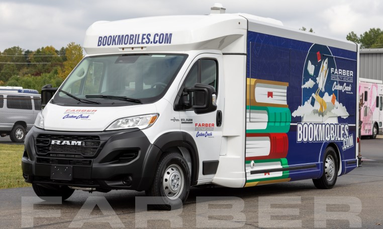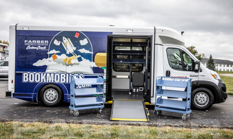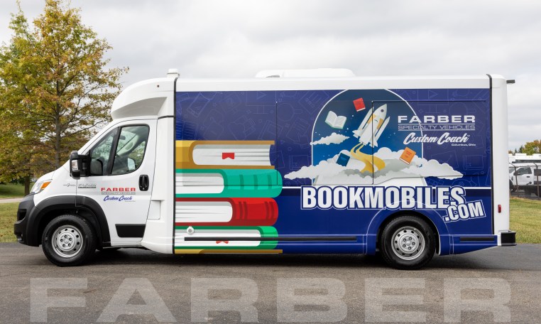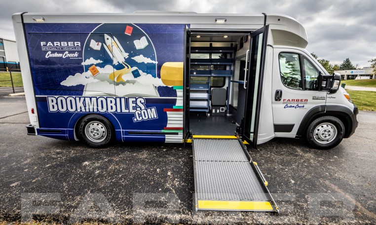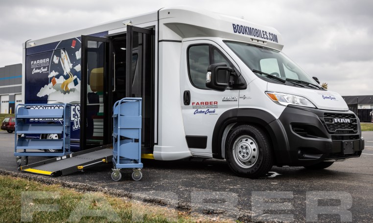 Vehicle number 17704 is an ELF (Extremely Low Floor) Bookmobile designed by Farber Specialty Vehicles on a Dodge RAM ProMaster chassis. Farber is here to help you with a custom solution to all your specialty vehicle needs. Call us today at (800) 331-3188.