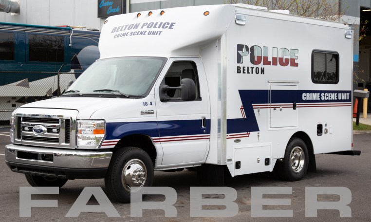 Evidence Collection Vehicle, 21′, 5.4L Triton V-8, 11,500 GVWR, 37 gallon fuel tank, 96″ exterior width. Body shall be FRP fiberglass re-enforced construction. Gel coat interior walls with heavy duty spray on commercial flooring. Body shall have (2)two swing-out rear doors. Full-length cabinets located on both sides of the unit designed for storage of evidence collection kit. LED interior lighting. The final finishing of this vehicle shall be to commercial truck standards.