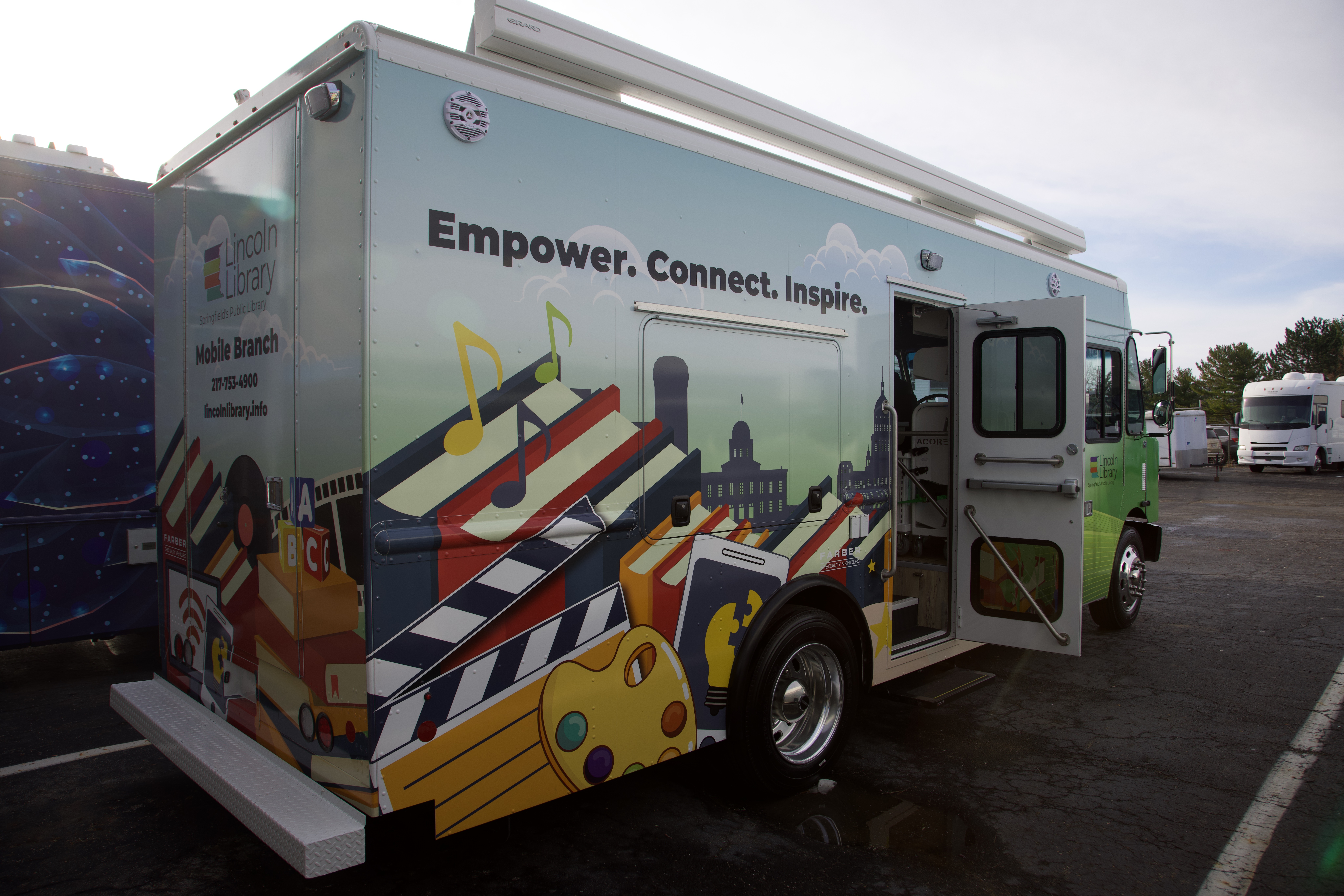 Experience the Lincoln Library System Bookmobile—built on a spacious Freightliner box truck to deliver books, technology, and library services across Lancaster County, Nebraska. Designed for accessibility and outreach, it brings the library directly to neighborhoods, schools, and underserved communities.