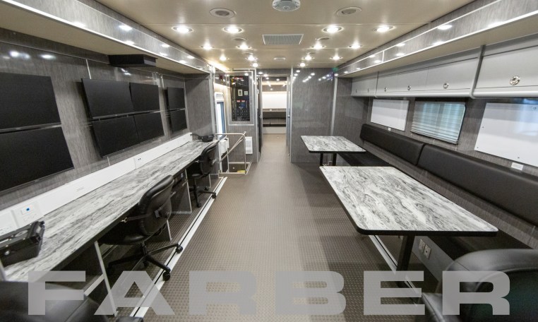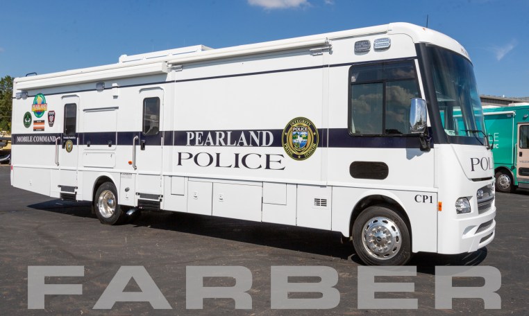 Mobile Command Post Vehicle 33’7″ Ford F53, 20,500 GVWR, 6.8L SOHC three-valve Triton V10 engine, torque shift, 5-speed automatic overdrive transmission, hydraulic, hydromax 4 sensor/4 channel 4-wheel ABS brakes, 75 gallon fuel tank, tilt power steering, cruise, coach style body, bucket seats, rearview camera monitor, weather band radio, AM/FM/CD, 27″ TV, refrigerator, sink, 10kW liquid-cooled gasoline powered generator, group 24 deep-cycle batteries, light fixtures on ceiling and under overhead cabinets, automatic hydraulic leveling system, scene lights, red/blue emergency lights, roof ventilators, roof access ladder. All vehicles delivered with as built interior and exterior AutoCAD drawings. Complete wiring schematics provided with each Mobile Command Post Vehicle.