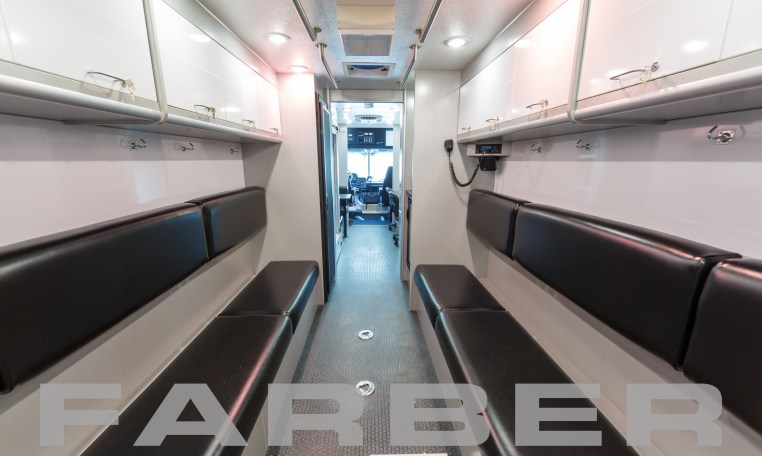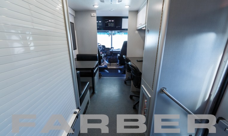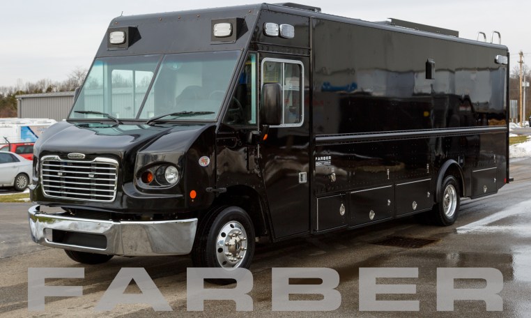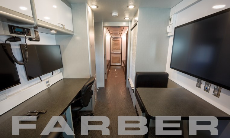 Bomb/Arson Mobile Command Vehicle 27’6″ Freightliner MT-55, 21,500 GVWR, Cummins 6.7L diesel front engine, Allison 2500 series four speed automatic transmission, hydraulic disc anti-lock braking system, 60 gallon fuel tank, tilt/telescopic power steering column, sedan door with slider window, two rear sedan doors with flip over step, exterior storage compartments, custom designed workstations, AM/FM/CD, non-skid commercial grade PVC flooring in continuous piece front to back, storage cabinets, countertops, shelves, tables, 120/240V AC control panel with generator, 13,000 BTU air conditioners with 5,600 BTU heat strips, deep-cycle batteries, emergency light package, scene lights, red/blue strobe lights, hydraulic leveling stabilizing system, roof access ladder. All vehicles delivered with as built interior and exterior AutoCAD drawings. Complete wiring schematics provided with each Mobile Command Post Vehicle.