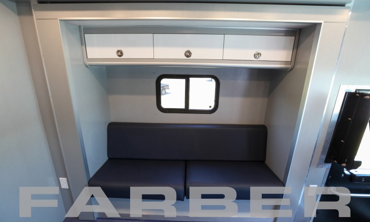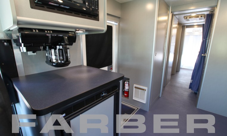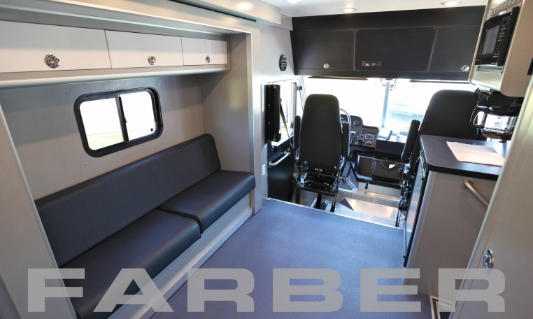 Mobile Command Post Vehicle 39’6″ Freightliner MT-55, 29,000 GVWR, Cummins 6.7L diesel, 260HP front engine, Allison 2500 4 speed automatic. Aluminum body construction with chrome front bumper, air brake system with ABS, 90 gallon fuel tank, power steering. Custom designed workstations, AM/FM/CD, sculptured bench seats, office chair for each workstation, non-skid flooring, restroom, chrome-plated sink, microwave, refrigerator, hot water heater, removable table for conference room, 20kW diesel generator, three 13,000 BTU air conditioners with 5,600 BTU heat strips, 6 deep-cycle batteries, 40 amp battery charger, motion sensor alarm, roof access ladder on rear. All vehicles delivered with as built interior and exterior AutoCAD drawings. Complete wiring schematics provided with each vehicle.