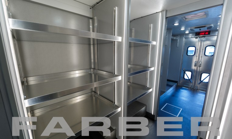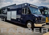 Mobile Command, Mobile Command Post, 39’6″ Freightliner MT-55, Cummins 6.7L diesel, 260HP front engine, Allison automatic transmission. Aluminum body construction with chrome front bumper, air brake system with ABS, 90 gallon fuel tank, power steering. Custom designed workstations, AM/FM/CD, sculptured bench seats, office chair for each workstation, non-skid flooring, restroom, chrome-plated sink, microwave, refrigerator, hot water heater, removable table for conference room, 20kW diesel generator, three 13,000 BTU air conditioners, deep-cycle batteries, 40 amp battery charger, ceiling and workstation lights, scene lights, roof access ladder on rear. All vehicles delivered with as built interior and exterior AutoCAD drawings. Complete wiring schematics provided with each Mobile Command Post Vehicle