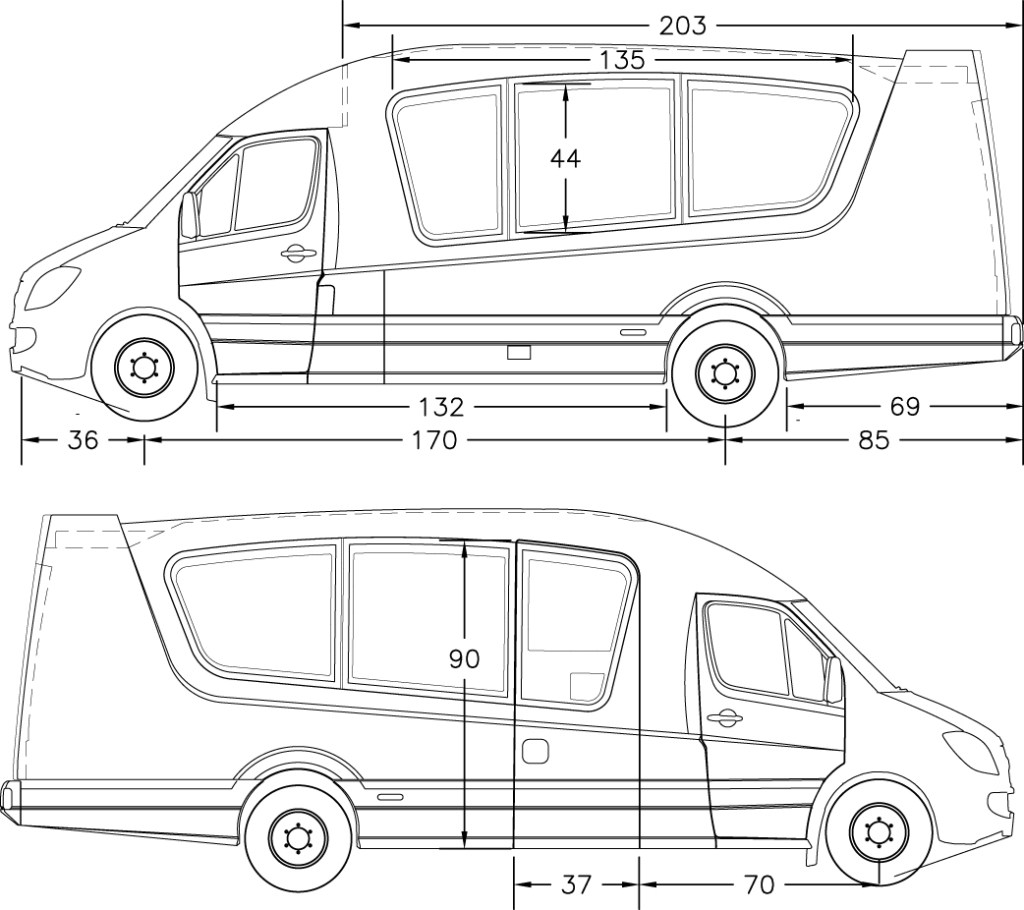 The Mauck 2 is designed exclusively for the Mercedes-Benz Sprinter cab chassis – blending the chassis and body style lines into a fully integrated appearance.
