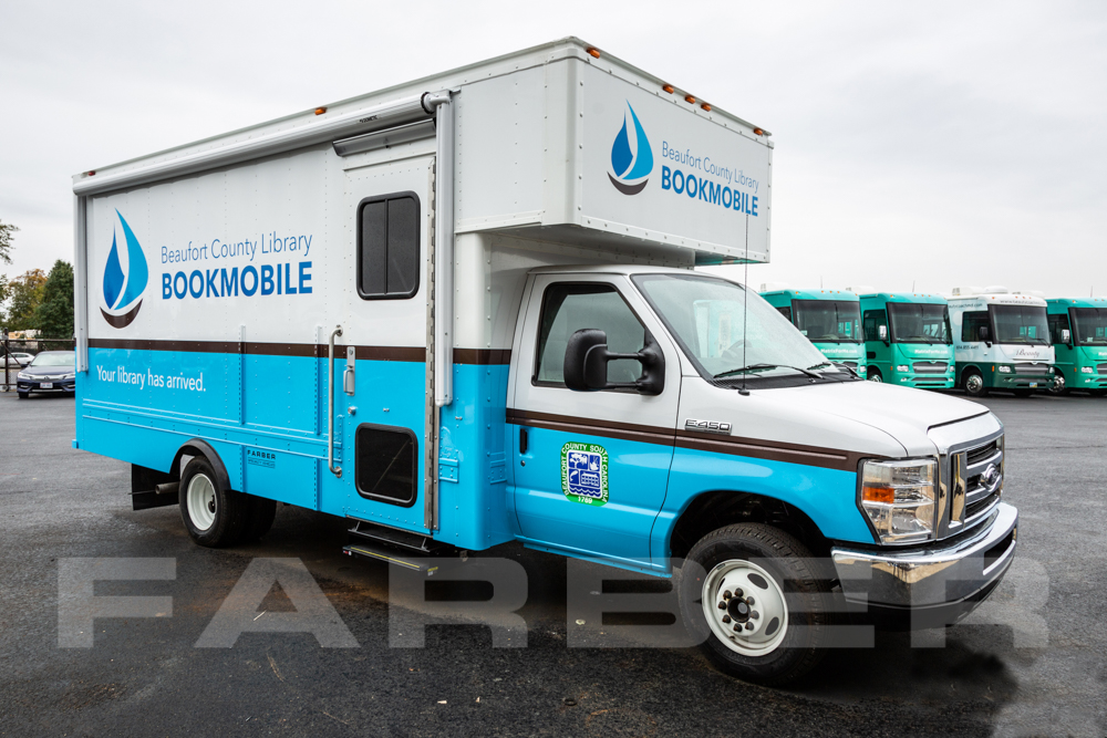 Farber Specialty Vehicles designs, builds and delivers custom library outreach vehicles with commercial grade flooring, acoustical ceilings, custom interiors, and more. Let us assist you in a custom bookmobile build on your choice of chassis including the Ford E450.