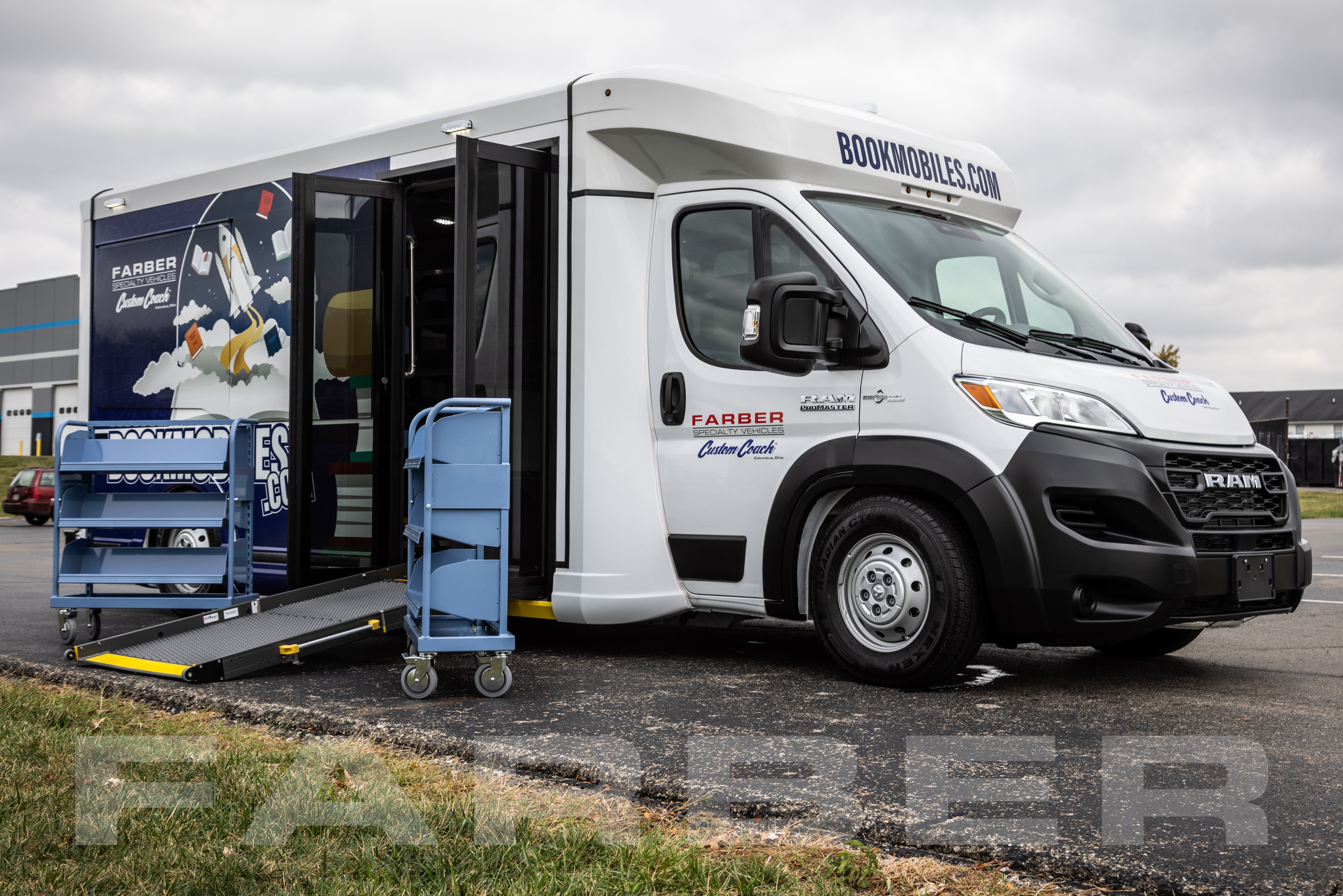 For ADA-compliant accessibility, a simple-to-operate, manually deployed rampprovides a 36-inch-wide, 800-lb capacity entryway. The ramp stores vertically inside the vehicle, protected from the elements, ensuring durability and ease of use. This design facilitates wheelchair access, effortless patron entry, and seamless loading/unloading of book carts.