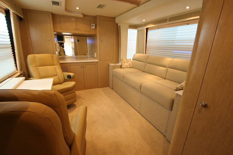 Regardless of the job, if it requires a mobile workplace, a Prevost X3-45 VIP specialty conversion can be designed to fulfill the purpose. A Prevost makes a first-class venue for luxurious corporate travel, mobile marketing and command centers, or even medical clinics. The possibilities are endless. Whatever the task, a Prevost specialty conversion coach provides a tough and reliable platform, and the space designed and equipped with everything needed to do the job properly.